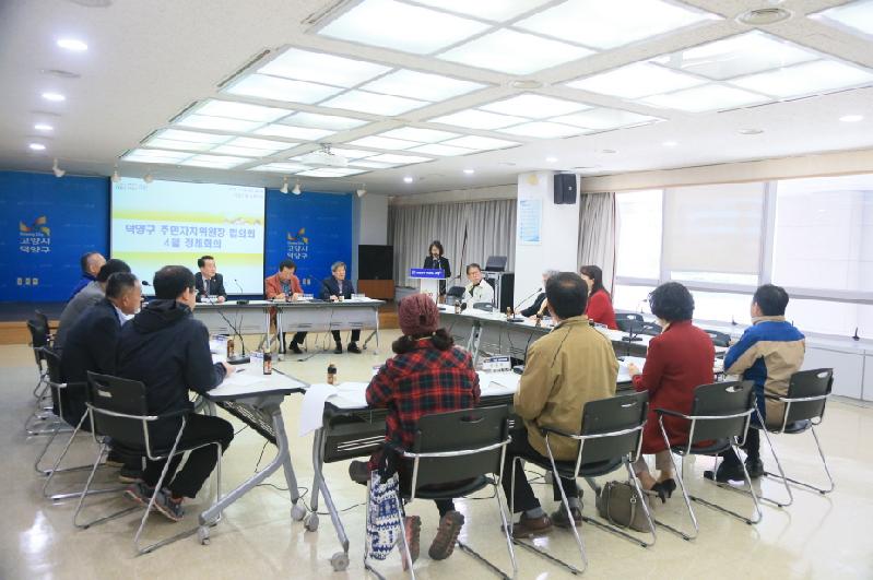 고양시 덕양구는 지난 10일 덕양구청 소회의실에서 각 동 주민자치위원장과 관계공무원 등이 참석한 가운데 ‘덕양구 주민자치위원장협의회 정례회의’를 개최, 주민자치 활성화 방안에 대한 활발한 공유와 소통의 시간을 가졌다.
