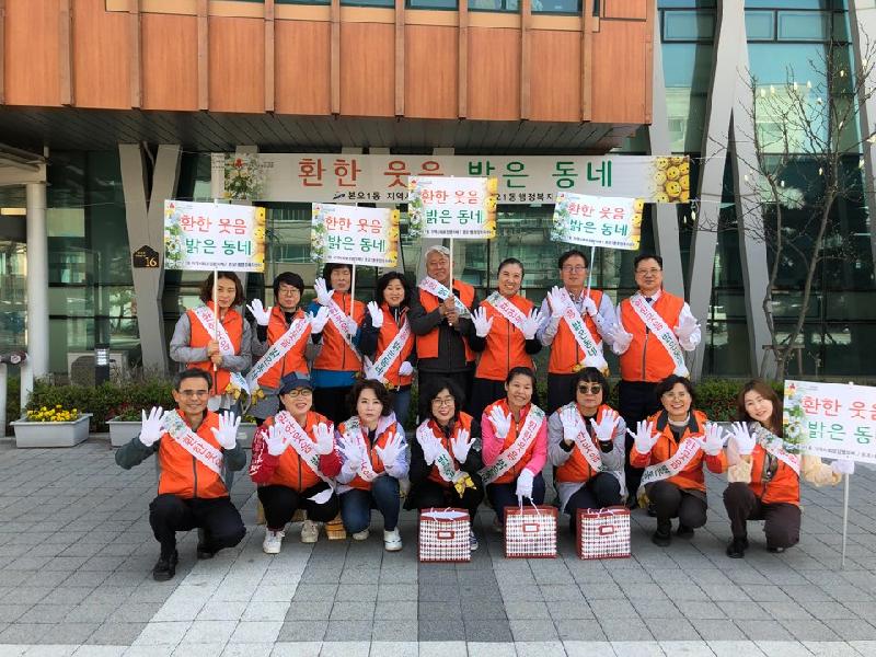 이날 진행된 캠페인은 협의체 위원 20명이 참여해 ‘환한 웃음 밝은 동네’라는 슬로건으로 본오1동 주요 도로 변을 중심으로 2개조로 나눠 동네 주민들과 주변 상인들에게 먼저 다가가 웃으며 인사하기를 실천했다.