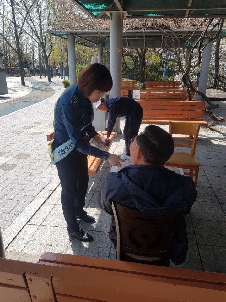 이날은, 공원을 찾은 시민들을 대상으로 여성폭력, 아동학대 근절 등 3대 치안정책의 내용이 담겨있는 리플릿과 티슈를 배부하고 여성폭력 근절 현수막 게시와 리플릿 배부 등 홍보활동을 펼쳤다.