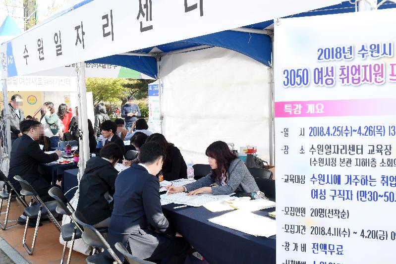 수원시는 18일 권선구 올림픽공원에서 ‘2018 일자리+미래 수원시 일자리박람회’를 개최했다.