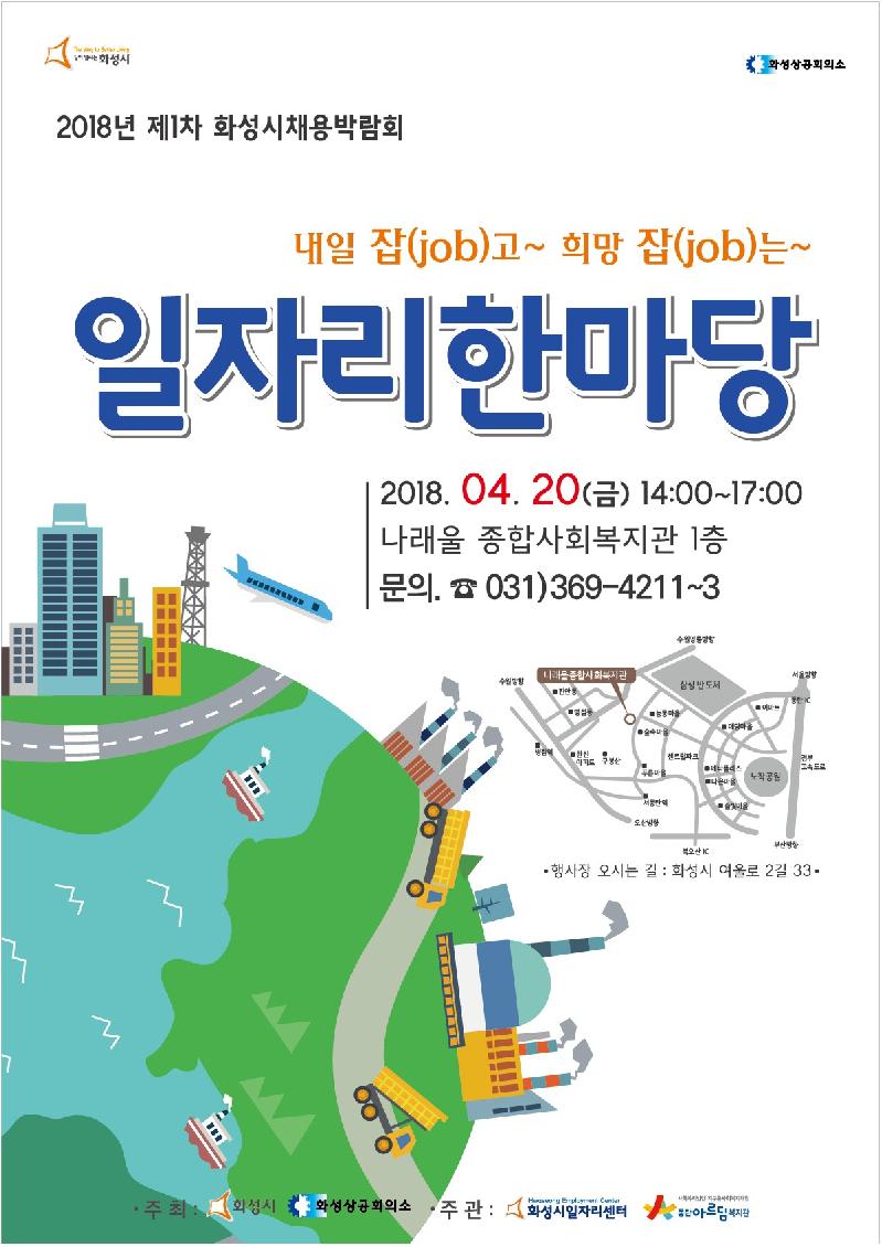 화성시가 장애인의 날을 맞아 오는 20일 오후 2시부터 5시까지 ‘나래울 종합사회복지관(능동 소재)’에서 ‘2018년 일자리 한마당’을 개최한다.