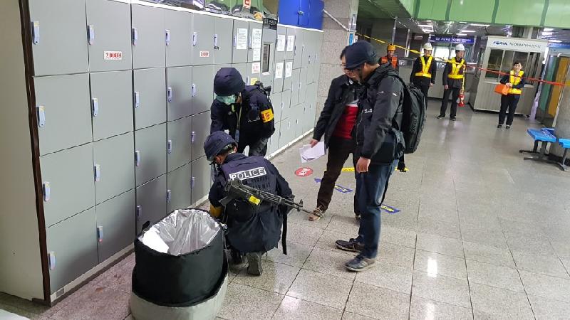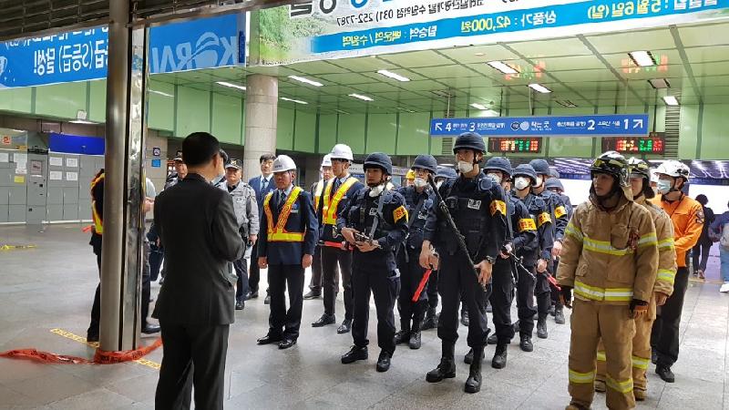 인천부평경찰서(서장 강헌수)는,지난 17일(화) 부평역 대합실 내에서 부평소방서, 한국철도공사 등 총 50여명이 참여한 가운데 유관기관 합동 대테러 모의훈련(FTX)을 진행 하였다.이번 훈련은 부평역 대합실 물품보관함 앞에서 불상의 물체가 폭발해 화재가 발생하였다는 112신고 접수에 따라 현장출동, 초동조치 등 각 기관의 역할과 임무를 점검하는 자리로,