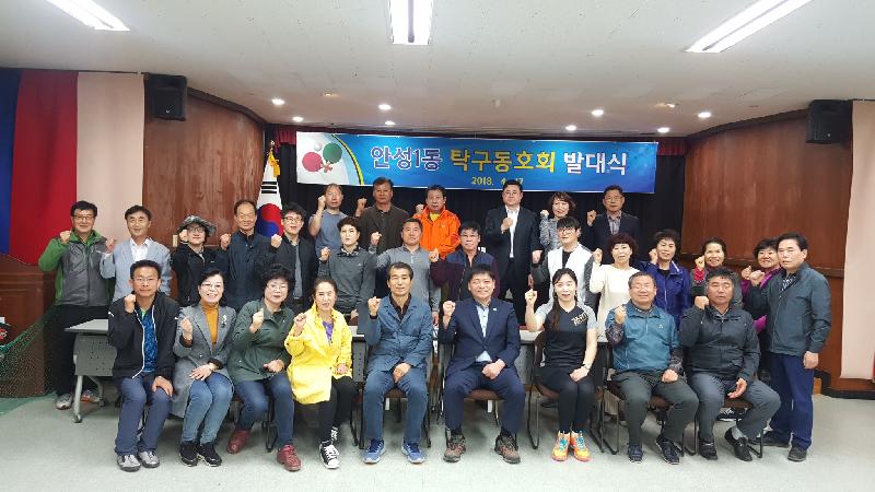 .임길선 1동장은 “안성1동 체육회의 열정으로 지역민들의 건강과 삶의 활력을 위한 탁구 동호회가 만들어 졌다”며 “탁구동호회가 건강은 물론 주민화합을 도모하는 모임으로 발전하길 바란다”고 말했다.오은경 체육회장은 “주민들이 쉽게 참여하고 다가 갈 수 있는 생활체육 프로그램으로 탁구를 선정하여 동호회를 운영하게 되었다”며 “많은 분들이 참여할 수 있는 건전한 여가생활이 되도록 노력 하겠다”고 말했다.