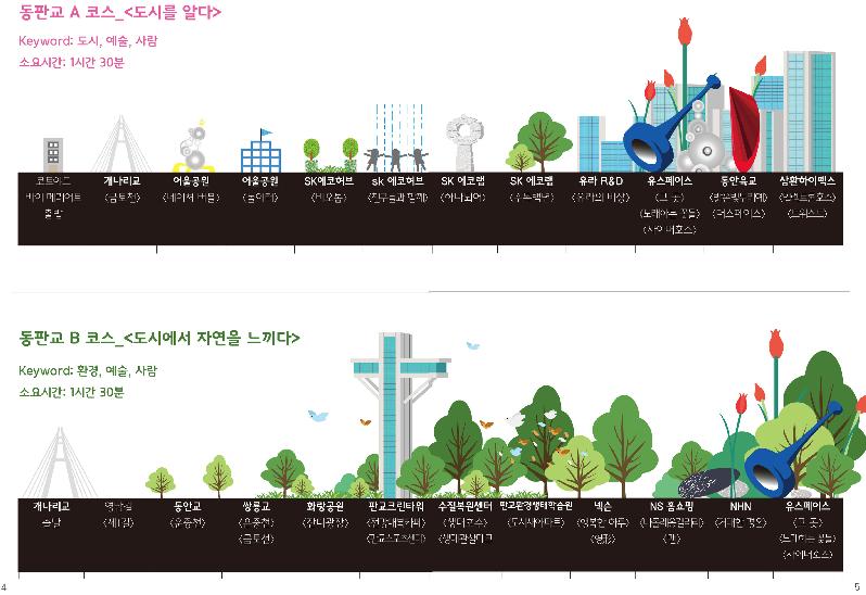 이 프로그램은 건축물과 공공 예술 조형물들이 탄천 자연환경과 조화를 이룬 곳들을 걸어서 관광한다. 문화관광해설사가 동행한다.