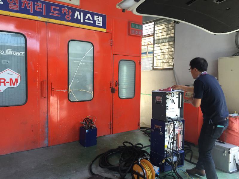 | 자동차 도장시설 총탄화수소 오염도 검사 중인 모습. |