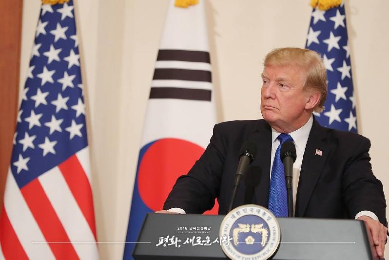 더불어 “(종전에 대한) 합의가 도출된다는 전제하에 나는 당연히 남북한의 협상을 축복할 것이며, 종전 논의에 대해서도 축복합니다.”라고 말했다.