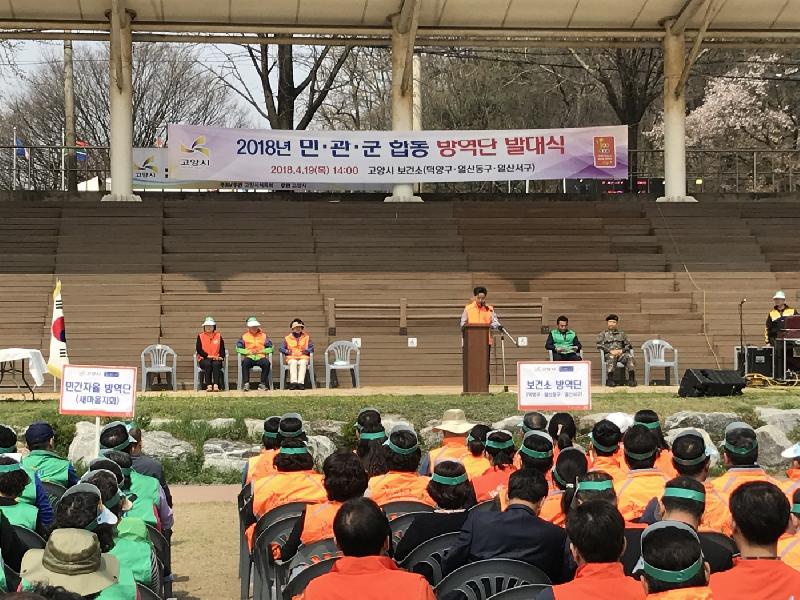 고양시는 지난 19일 공릉천 문화체육공원에서 감염병 예방 및 효율적인 방역 협력체계 마련을 위해 민·관·군 합동방역단 발대식을 개최했다.