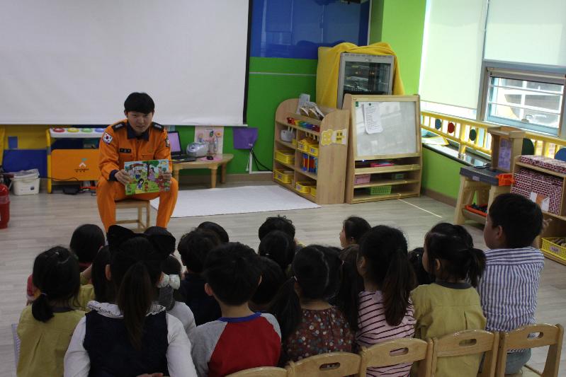 인천서부소방서(서장 김준태)는 지난 19일 오후 2시 서부소방서 홍보팀 특수시책으로 제작해 전국최초 동화이야기를 적용한 컬러링북인 ‘세상에 하나뿐인 소방안전 동화책’ 을 통해 쉽고 재미있는 이야기로 청라국제어린이집을 찾아 소방안전교육을 실시했다.