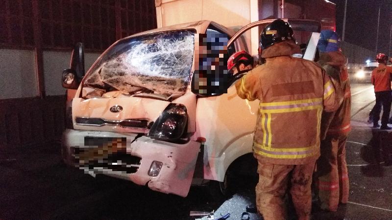 인천부평소방서는 지난20일 오전 4시 39분경 서울외곽순환도로 중동나들목 부근 소래터널 방면으로 가던 덤프트럭과 1.5톤 화물트럭 간 추돌사고가 발생해 화물트럭 운전자를 구조했다.
