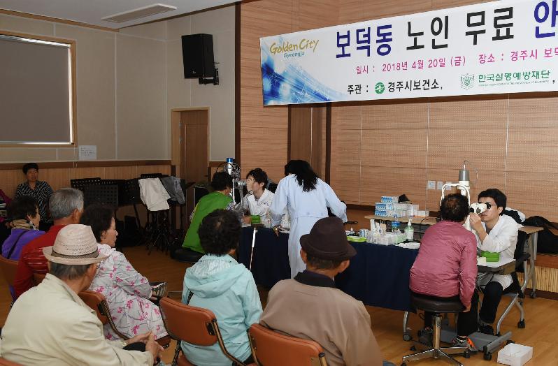 경주시 보건소는 20일 한국실명예방재단과 함께 보덕동 주민자치센터에서 60세 이상 어르신 180여명을 대상으로 눈 질환 조기 발견과 실명 예방을 위한 무료 안(眼) 검진을 실시했다.