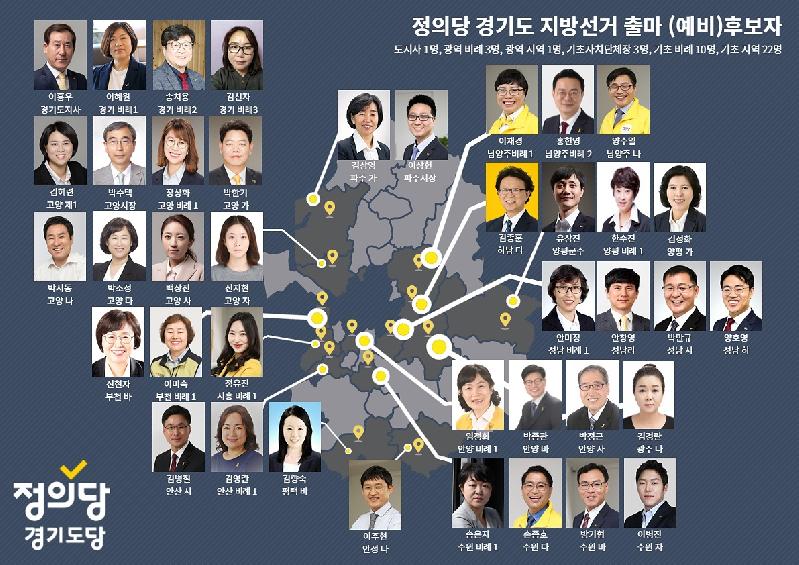 경기도의원 비례후보는 1번 이혜원 2번 송치용 3번 김선자를 확정 했다. 이혜원 후보는 정의당 경기도당 부위원장을 송치용 후보는 정의당 경기도당 위원장, 대한수의사협회 부회장을 맡고 있다. 3선 고양시의원을 지낸 김혜련 의원이 고양 제1선거구 경기도광역의원에 선출되었다.