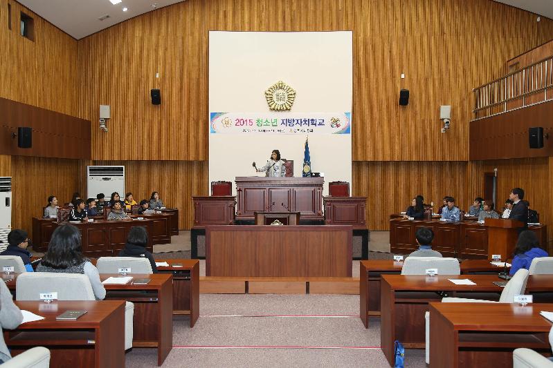 경주시의정회(회장 박규현)에서 주최․주관하는 2015년 청소년 지방자치학교가 11월 17일부터 20일까지 4일간 경주시의회 본회의장과 소회의실에서 운영된다. 경주시 청소년 지방자치학교는 청소년들에게 시의회 현장을 직접 체험하게 함으로써 지방자치에 대한 올바른 가치관과 지방의회의 기능과 역할을 교육함으로써 민주적 가치관 확립과 차세대 지도자로서의 역량을 키워주기 위해 2003년부터 매년 실시하고 있다.올해는 매일 50명씩 지역 내 초등학생 100명, 중학생 100명 등 총 200명이 참여하며, 교육 내용은 시의회 활동 현황에 대한 영상물 상영을 시작으로 지방의회의 역할 및 경주시의회 현황에 대해 전직 의원들이 직접 강의하고, 지방자치의 이해와 회의운영요령, 토론기법 및 모의의회 제안서 작성 등에 대해 배우고, 의장단 선출과 본회의장에서 실시하는 모의의회에서는 5분 자유발언 등을 시연한다.