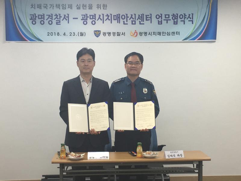 광명시 치매안심센터는 지난 23일 광명경찰서와 ‘치매노인 실종예방 및 신속 발견을 위한 업무협약’을 체결했다.