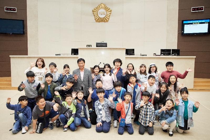 | 지난 20일 청소년 지방자치아카데미에 참여한 능원초등학생들. |