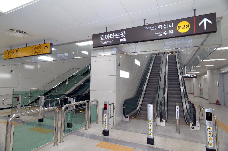 환승 통로를 통해 분당선(서울 왕십리↔수원) 또는 신분당선(서울 강남역↔수원 광교)을 바로 갈아탈 수 있다.