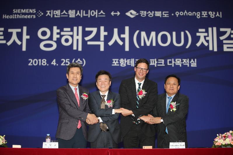 포항시의 최근 연이은 투자유치 성공으로 눈길을 끌고 있다. 포항시는 경상북도와 25일, 포항테크노파크에서 이강덕 포항시장, 김순견 경제부지사, 지멘스헬시니어스 이명균 대표이사, 지멘스헬시니어스 초음파사업부 세바스찬 펑크(Sebastian Funk) CFO 등이 참석한 가운데 진단 및 치료용 의료기기 생산기업인 지멘스헬시니어스와 투자유치 양해각서(MOU)를 체결했다. 이에 따라, 포항시는 오는 2022년까지 총 5년간 FDI 1천7백만불(186억원)의 투자유치와 함께 신규고용 60여명을 포함해 기존 포항 사업장 근무인원 280명, 2020년까지 사업장 이전 통합인원 약 155명을 합하면 총 500여명의 직원이 포항에 상주하게 됨으로써, 청년일자리창출과 지역경제 활성화에 큰 도움이 될 것으로 기대하고 있다. 지멘스헬시니어스는 초음파 진단 의료기기 등 세계 최첨단 의료장비를 생산하는 기업으로 2017년 10월 25일 지멘스 헬스케어에서 법인 명칭을 변경하였다. 전 세계 73개국에 진출해 있으며, 우리나라에는 2개 연구소와 포항, 경주, 성남에 3개의 사업장을 운영하고 있다. 지멘스헬시니어스의 주요 생산품은 트랜스듀서, 카테터, 초음파 시스템이며, 생산제품의 전량을 미국에 수출할 계획이며, 향후 5년간 의료기기 부품의 매출은 과거 5년 대비 약 30% 이상 성장이 예상된다. 국내 의료기자재 및 물품 구매로 인한 전후방 관련 산업도 2,000억 원으로 추산된다. 허벅지 절제 후 정맥을 통해 심장까지 볼 수 있는 삽입형 튜브인 카테터는 포항에서 완제품을 생산하며, 외부에서 심장 및 태아를 볼 수 있는 초음파 시스템과 식도로 삽입하여 심장을 보는 초음파 장비인 Tee는 포항에서 제작 후 성남에서 최종 조립하여 납품이 이루어질 계획이다. 헬스케어 시장은 연평균 6%대 성장을 하고 있으며, 2020년 기준 6.8조 달러로 예상된다. 현재 시장 규모는 북미 시장이 가장 크나, 향후 성장은 아시아 태평양 지역의 개도국 위주로 성장할 것으로 전망되고 있다. 지멘스헬시니어스는 2018년까지 1월 기준으로 18,000여건 이상의 특허를 보유하고 있으며 POSTECH, KAIST 등 국내 대학 및 연구기관과 협력하여 글로벌 고객에 대한 시장 점유율을 확대하여 국가 경제발전과 함께 인류 공동번영에 이바지할 것이라고 밝혔다. 이 시장은 “지난해 11월15일 포항지진으로 인해 침체된 지역에 글로벌 기업의 포항 투자로 경제 활력을 불어넣어 준 것에 대해 감사드린다”면서 “포항 지역의 4세대 방사광가속기를 비롯한 바이오, 로봇 등 우수한 연구시설과 인프라를 바탕으로 지멘스헬시니어스가 글로벌 초일류기업으로 더욱 성장해나갈 수 있도록 최선을 다하겠다”고 말했다.. 이달 12일, 리튬이차전지 소재 생산기업인 ㈜에코프로의 1조원 투자유치에 이어 세계적인 의료기기 분야의 유치해 양질의 일자리 창출 뿐 아니라, 포항지역의 철강 일변도 산업구조를 다변화하고 4차 산업혁명 시대를 대비할 좋은 기회를 만들어 지역경제 활성화에도 크게 기여할 것으로 기대된다.배수남 기자 najomba2279@daum.net