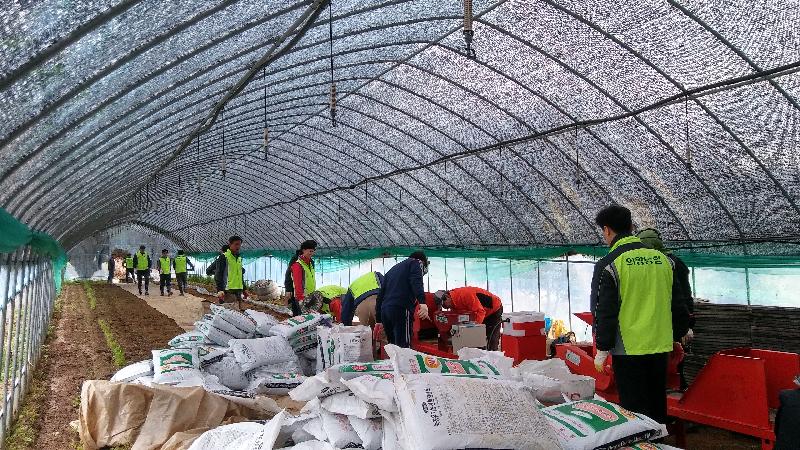 이날 농촌일손돕기 행사로 친환경 우렁쌀 볍씨파종 작업을 하였으며, 파종한 친환경 무농약 우렁쌀은 추청벼로 밥맛이 매우 좋기 때문에 전량 관내 학교급식에 공급된다.
