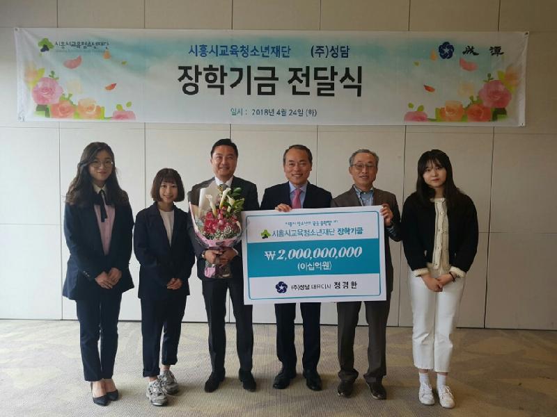 지난 24일, ㈜성담(대표 정경한)이 시흥시교육청소년재단(이사장 김상복)에 20억 원의 장학금을 기탁했다.