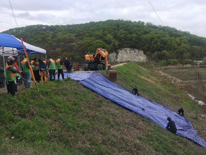 이날 훈련은 지역주민과 수리계, 자율방재단, 한국농어촌공사 등 40명이 참석하여 집중호우로 인한 재난수습 및 응급복구를 내용으로, 기상청 발표와 함께 호우주의보 발령 가상 상황에 따른 단계별 훈련을 진행하였다.