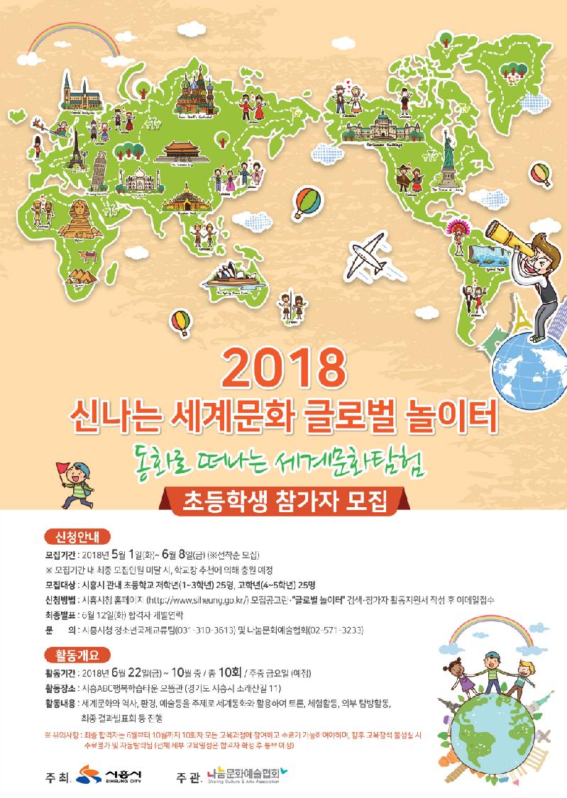 신나는 세계문화 글로벌 놀이터는 동화를 활용하여 세계문화와 역사, 환경, 예술 등을 주제로 토론, 체험활동, 외부탐방 견학 등을 통해 국제문화의 다양성을 이해하고 경험하게 하는 청소년국제교류 사업이다.