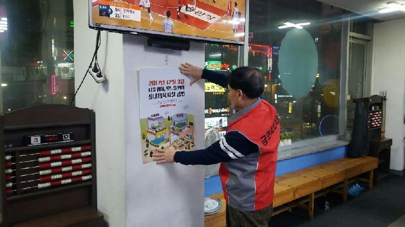 주요 점검 대상은 지난해 12월 금연구역으로 지정된 당구장 등 실내체육시설을 비롯한 PC방, 음식점 등이다.