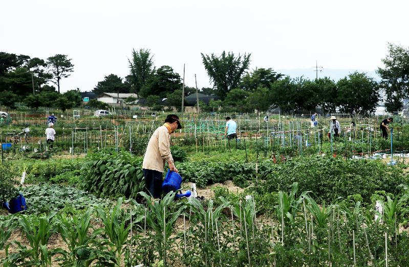 | 당수동 시민농장에서 텃밭을 가꾸고 있는 어르신들. <사진=수원시청 제공> |