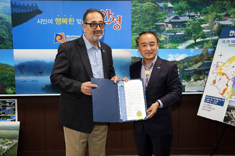 명예시민증과 브레아-안성 자매도시협회 감사패 전달을 위하여 브레아시장(글랜 파커) 및 시의회를 대표하여 지난 4월 23일부터 25일까지 마티 시모노프 브레아시의원이 안성시를 방문하였다.