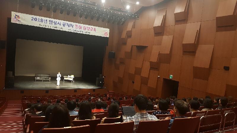안성시는 지난 24일 안성시 공직자 200여명을 대상으로 2018년 공직자친절 감성교육을 진행하였다.