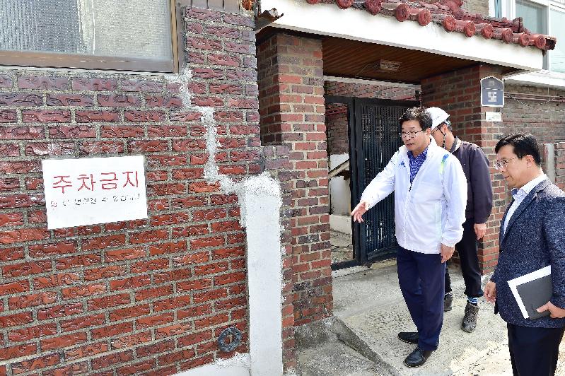 고색로66번길 일원 주택가의 벽면 균열 상태와 응급 보수 현황을 둘러본 염 시장은 “주민 안전을 최우선에 두고 안전사고가 발생하지 않도록 수시로 점검해야 할 것”이라며 “피해 주민에 대한 철도공단·시공사의 보상과는 별개로 주민 안전을 위해 시가 할 수 있는 모든 조치를 검토해 시행하라”고 주문했다.