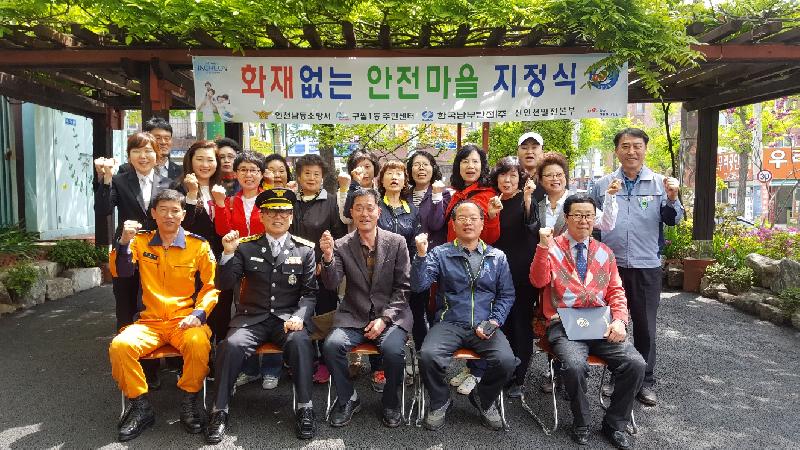 인천 남동구 구월1동(동장 이종학)이 지난달 26일 인천남동소방서 예방안전과(과장 오정근)와 협업, 구월1동 관내 10통 일원을 ‘화재없는 안전마을’로 지정하고 지정식을 개최했다.