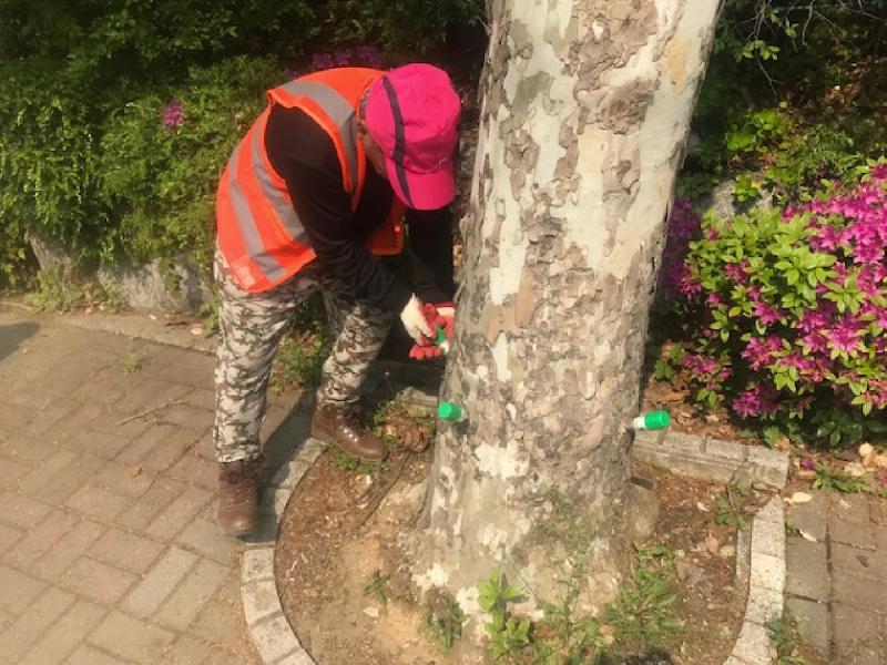 구는 최근 온난화 현상과 적은 강수량으로 인해 병해충 피해가 증가하고 있어 수간주사 방제 대상을 지난해에 비해 늘려 방제에 총력을 기울이고 있다. 이번에 수간주사로 방제한 수목은 버짐나무, 회화나무, 왕벚나무 등 6천 그루로 흰불나방, 방패벌레, 진딧물 등 피해가 심한 해충에 대한 방제 효과가 탁월하다.