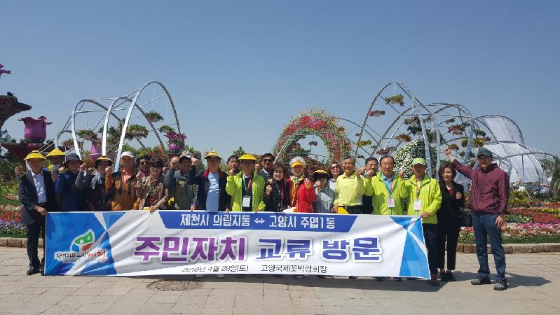 고양시 주엽1동 주민자치위원회는 지난 달 28일 고양시 호수공원 국제 꽃박람회장에서 제천시 의림지동 주민자치위원회와 지역사회 상생발전 및 화합을 위한 교류행사를 가졌다.