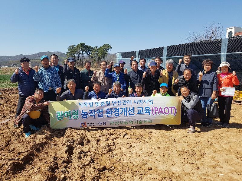 또한 안성시농업기술센터는 지난 4월 11일 농업인들의 참여를 유도하는 PAOT(농작업 참여형 개선활동 훈련) 교육을 진행하였고, 여주대학교 이정원 교수님을 섭외하여 4월부터 10월까지 총 10회에 걸쳐 신체기능 검사와 함께 농부증 예방체조 교육도 실시하고 있다. 그리고 농업활동 안전실천 점검 및 사고이력 관리를 위해 농작업 안전기록부 작성교육을 통해 농작업 안전기록부 작성을 지도하고 있다.