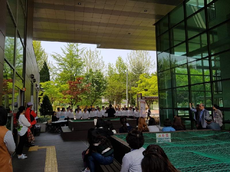 첫 공연은 지난달 30일 오후 1시30분~2시까지 30분간 기흥구보건소 광장에서 열렸다. 이날 합창단은 스페인 가요를 번안한 ‘그대 있는 곳까지(Eres Tu)’를 비롯해 ‘밀양아리랑’ 등 귀에 익은 친숙한 곡들을 들려줘 주민들의 호응을 얻었다. 또 지휘자 엄인준 씨는 특별순서로 뮤지컬 ‘지킬과 하이드’의 넘버‘지금 이순간’을 열창해 청중의 감동을 이끌어냈다.