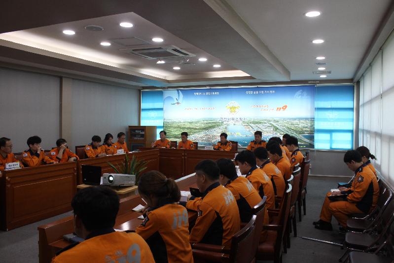이날 훈련은 관내 대형마트 내 푸드코트에서 음식 조리 중 화재가 발생함에 따른 대응단계를 발령하여 다수의 인명피해 발생 및 연소 확대되는 상황을 제시하고 통제단의 각 반별 대응대책을 모색했으며 임무 수행에 있어서 미흡한 점을 보완하기 위한 토론을 거쳐 문제점 해결방안을 강구하는 시간을 가졌다.