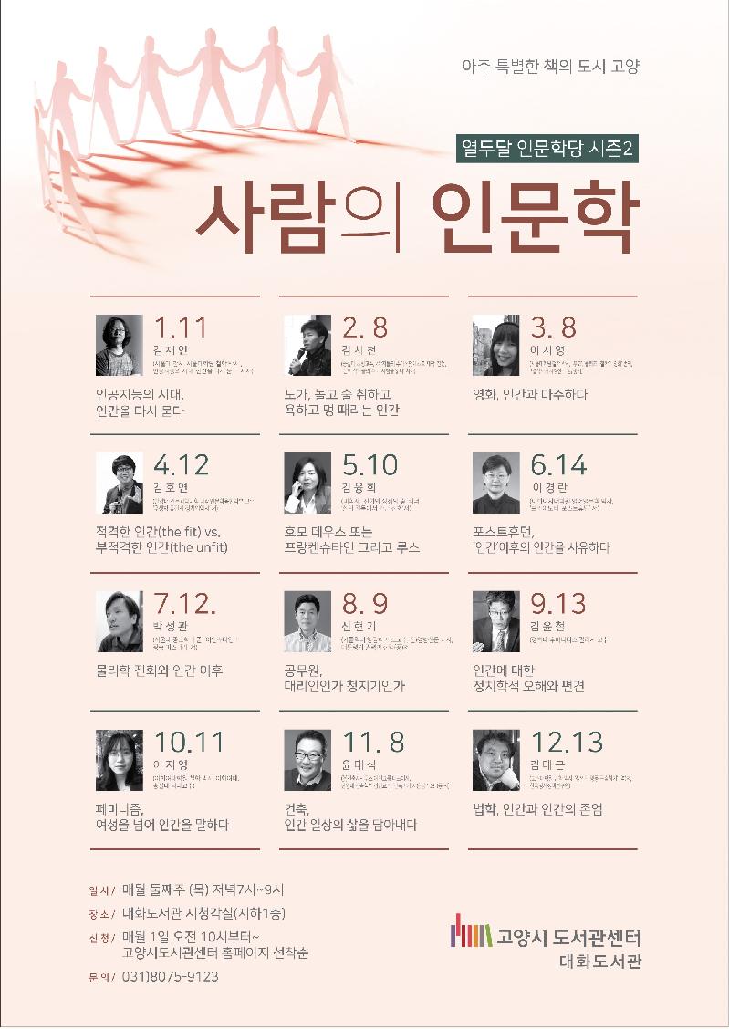 일산서구도서관과장은 “이번 강연은 어렵게 느껴지는 인문학을 쉽게 다가설 수 있도록 기획됐으며 바쁜 시민들의 삶에 쉼표가 되길 바란다”고 말했다.