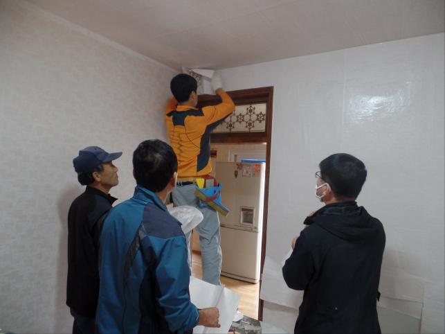 이날 봉사활동에는 무전동봉사대 김덕우(우경장식 대표)회원을 주축으로 저소득 독거노인 김❍❍세대의 집에서 곰팡이 등으로 일상생활에 불편을 초래하던 안방과 거실의 도배와 장판을 교체하고 전기기구를 새로 교체 수리했다.