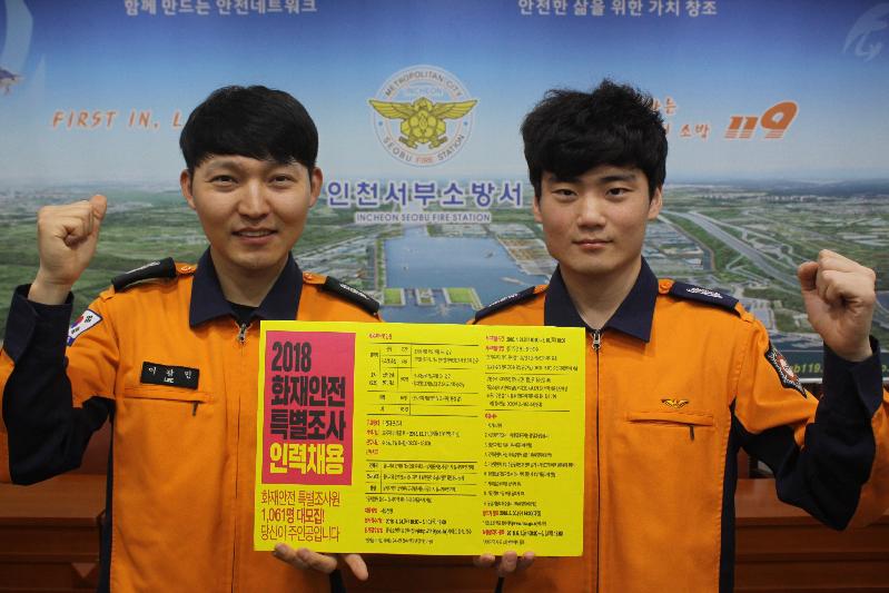 인천서부소방서(서장 김준태)는 ‘사람이 먼저인 나라, 화재로부터 안전한 대한민국’을 목표로 올해 4월 24일부터 5월 10일까지 접수기간 내에 청년 일자리 창출을 도울 2018 화재안전 특별조사 인력채용 막바지 홍보에 적극 나섰다.