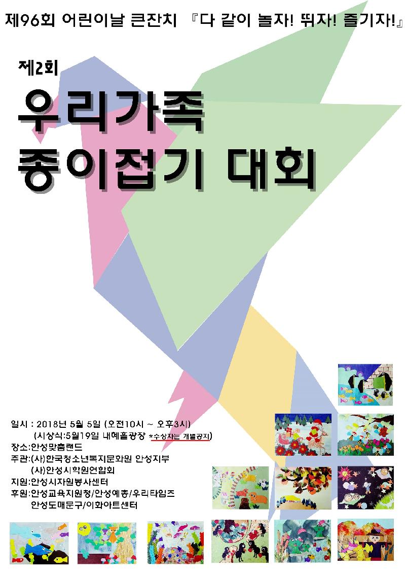 제2회 ‘우리가족 종이접기대회’가 오는 5일(토) 안성맞춤랜드에서 열린다.