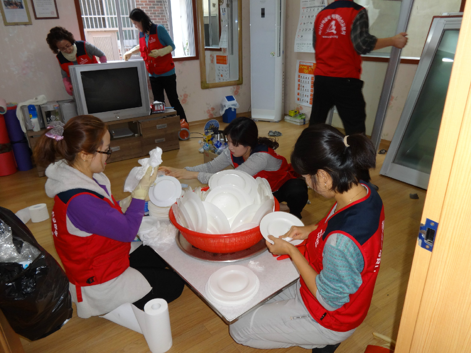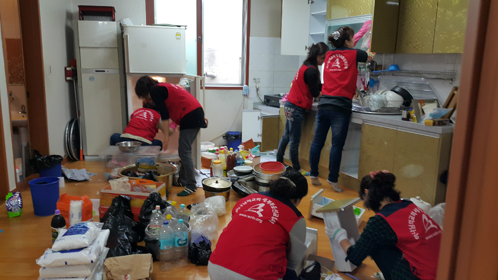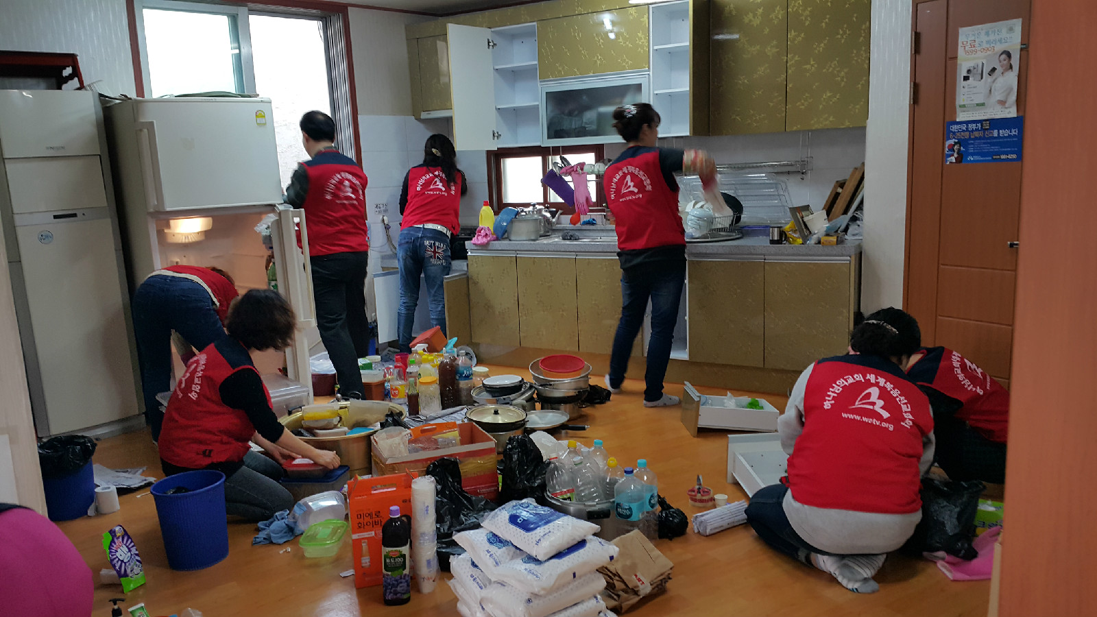 교회 신도들은 화장실과 창문 및 창틀, 실내벽면, 천장에 먼지와 찌든 때를 제거하고 그릇 등을 청결하게 했다.