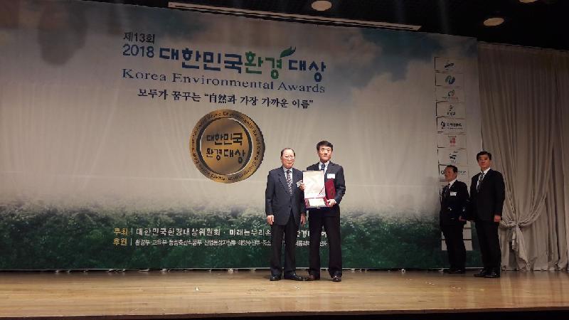 올해로 13번째를 맞는 ‘2018 대한민국 환경대상’은 인간중심 비전과 친환경을 실천하는데 뚜렷한 업적을 가진 기업, 공공기관, 단체, 개인을 대상으로 매년 실시하는 이 분야 최고 권위 상으로, 대한민국환경대상위원회가 주최하고 환경부, 교육부등 8개 정부부처가 후원한다.