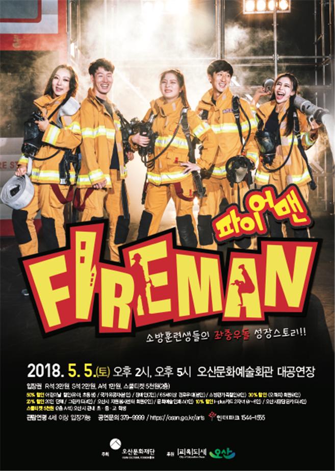 오산시에서는 오는 5일(토) 문화예술회관 대공연장에서 소방훈련생들의 성장스토리를 담은 한국의 대표 넌버벌 퍼포먼스 ‘파이어 맨(Fire man)’ 공연을 개최한다고 밝혔다.