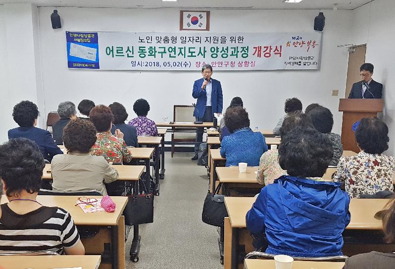 안양시 만안구(구청장 홍삼식)는 지난 2일 만안구청 상황실에서 60세 이상 어르신들을 대상으로 운영하고 있는 ‘동화구연지도사 양성과정’ 개강식을 개최했다.