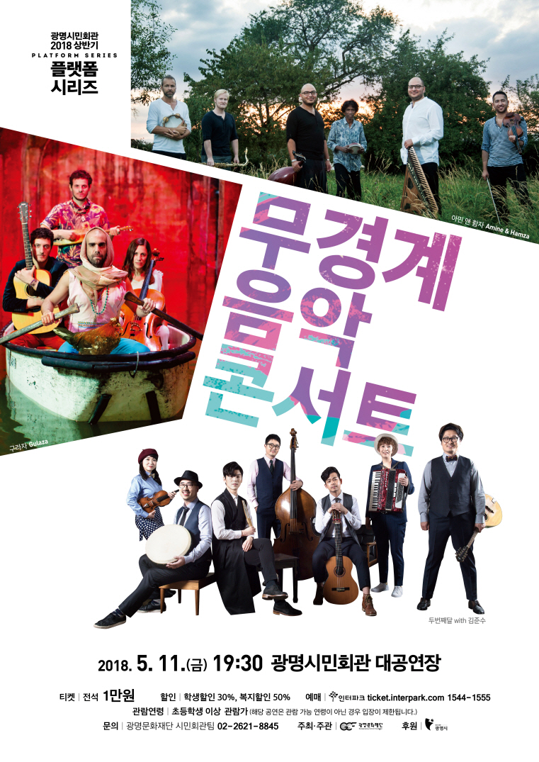 5월 11일(금)에 공연되는 는 경계 없는 새로운 음악을 시도하는 월드뮤직팀을 만나볼 수 있는 공연이다.