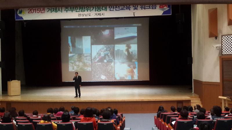 거제시 주부민방위기동대(대장 박춘옥)는 경남상도 및 거제시 주관으로 지난 17일 거제시청소년수련관에서 ‘2015년 주부민방위기동대 안전교육 및 워크숍’을 개최했다.