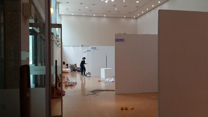 “오늘까지 전시 한다는 날짜를 보고 관람하러 온 시민들이 오전부터 작품들을 다 철거 하여 이상하게 생각 하고 돌아갔는데 이유가 무엇인가?” 전 운영위원이라는 여성이 하는 말, “어제도 파리가 날려 오늘 일찍 철거를 하는 것이라” 말한다.