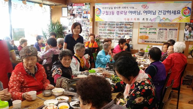 인천 남동구 구월3동(동장 이승렬) 소재 ‘마늘오리 인천1호점’(대표 김언식)에서 어버이날을 맞아 지난3일 ‘구월3동경로당’ 어르신 30여분에게 식사를 대접하는 행사를 개최했다.