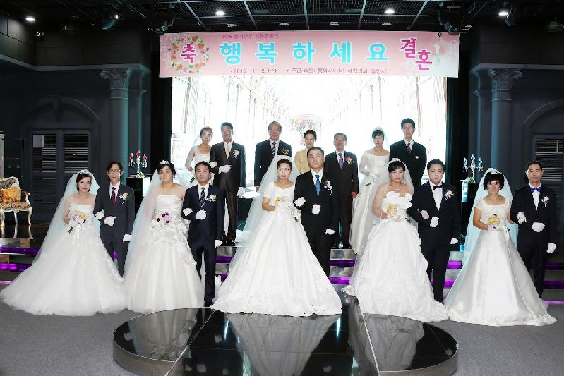 통영시여성단체협의회에서 주관하고 통영시가 후원한 2015 동거부부 합동결혼식이 지난 18일 광도면 죽림 소재 해피데이웨딩홀에서 열렸다. 통영시여성단체협의회 황영숙부회장과 혼주대표 최종이의 혼주 점촉으로 시작하여 통영시여성단체협의회 선정순 회장의 주례, 통영시여성합창단의 축가로 이어진 이날 행사에는 김동진 통영시장, 강혜원 통영시의회 의장을 비롯한 내빈들과 가족, 친지, 회원 등 300여명이 참석해 신랑 신부를 축하했다.