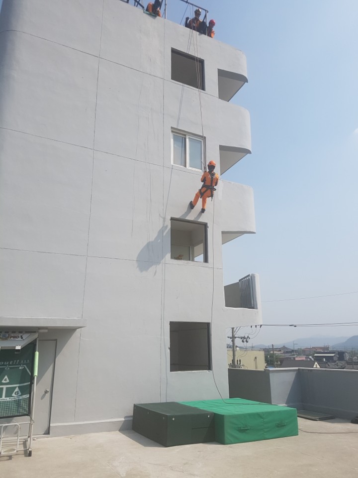 | 로프하강 훈련중인 경주 소방서 대원들<경주 소방서 제공> |