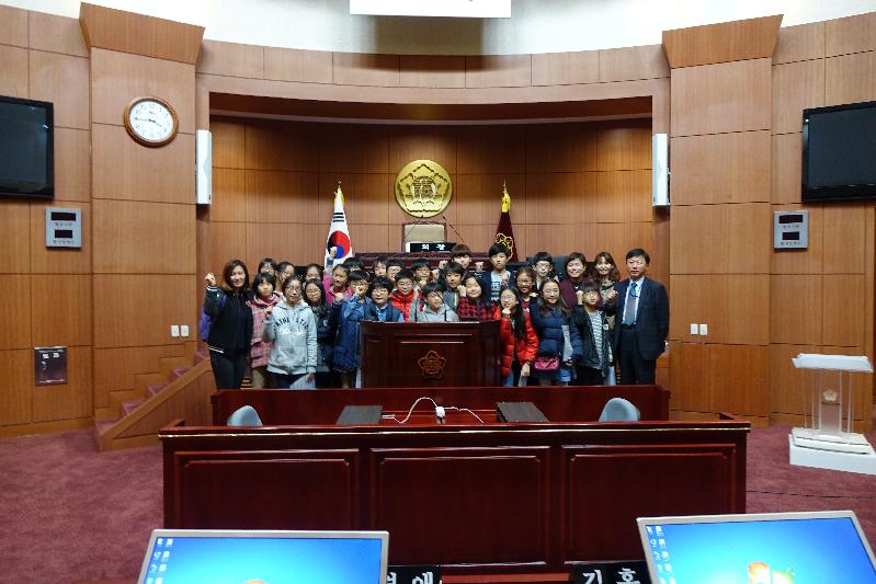 화성시의회에서 운영중인 의회의 기능과 역할, 본회의장 현장 체험을 통해 미래에 대한 꿈을 설계하는“2015년 청소년 의회체험 교실”에 2015년 11월 18일 솔빛초등학교(반송동 소재) 전교어린이회(4~6학년 각반회장) 25명이 참여하였다.